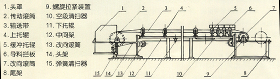 6 槽型托輥組 15 尾部轉(zhuǎn)刷清掃器
